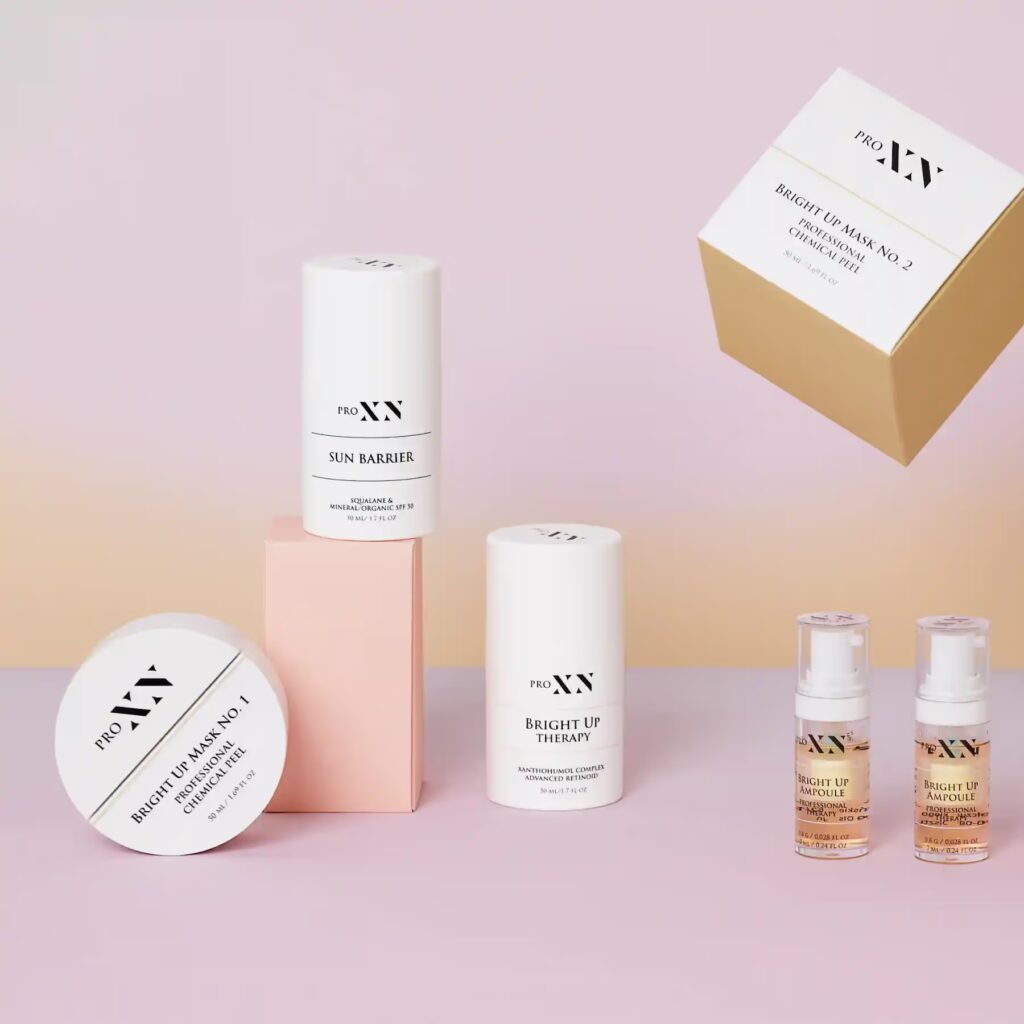 Zabieg PRO XN Bright Up nr 1 skutecznie redukuje przebarwienia i poprawia koloryt skóry. Głęboko nawilża i poprawia jej elastyczność, a także redukuje szkodliwe działanie wolnych rodników – pomagając zachować młody i promienny wygląd skóry.